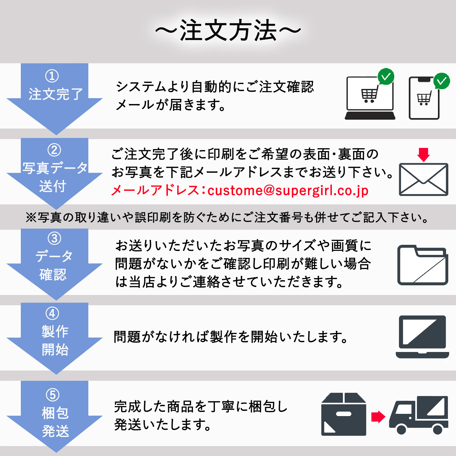 ご注文完了後、カスタム用の写真やデザインデータをメールにてお送りください。